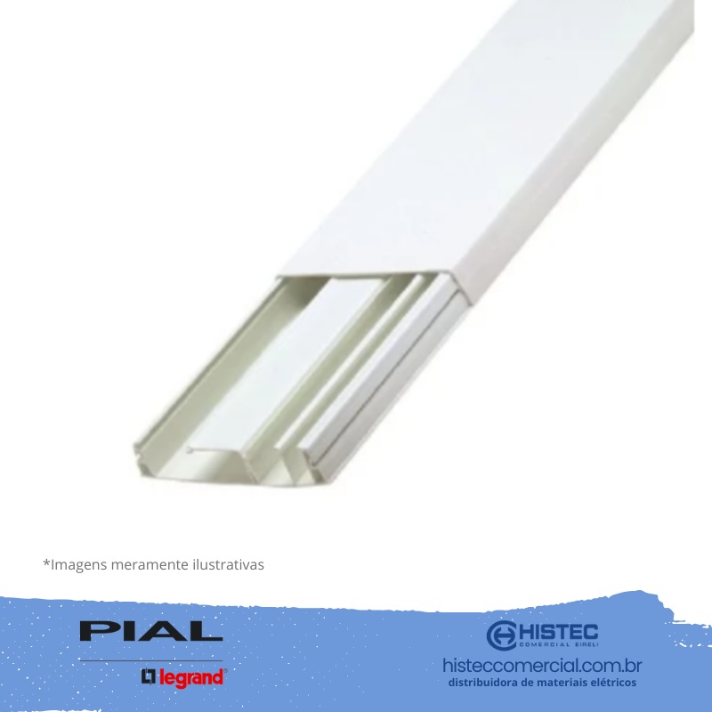A Canaleta 110x20x2000mm com divisória da linha Sistema X Pial Legrand (ref. 30046X) é fabricada em PVC branco de alta resistência, ideal para organizar e proteger fios e cabos em ambientes residenciais, comerciais e corporativos.