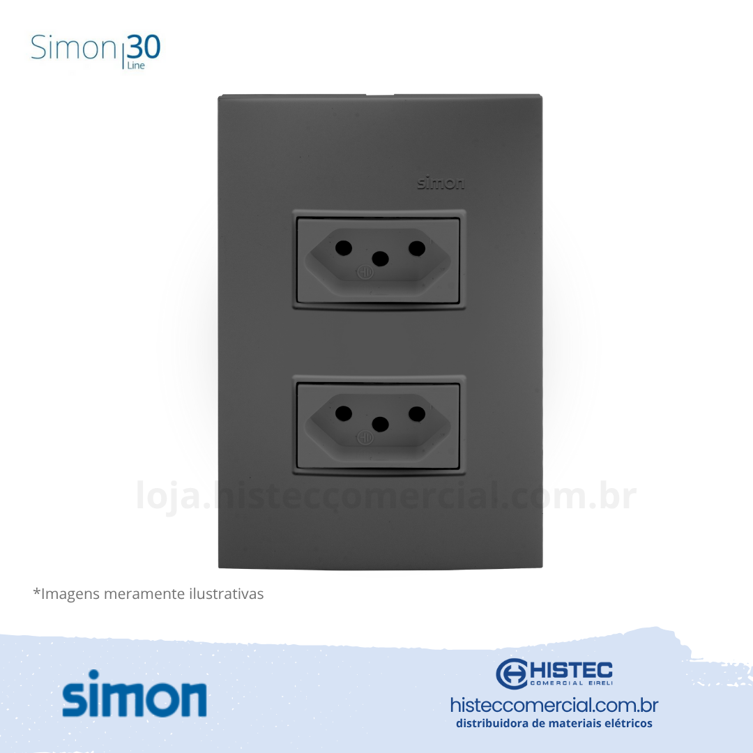 Com acabamento grafite elegante e fabricado em plástico de engenharia resistente, este conjunto é compatível com módulos Simon 35 e placas Simon 30, permitindo fácil integração e instalação segura. O conjunto inclui tomada 2P+T, placa e suporte, oferecendo tudo o que você precisa para uma instalação completa e confiável. A linha Simon 30 Line é reconhecida por sua durabilidade, design contemporâneo e praticidade, unindo eficiência e estilo em um único produto.