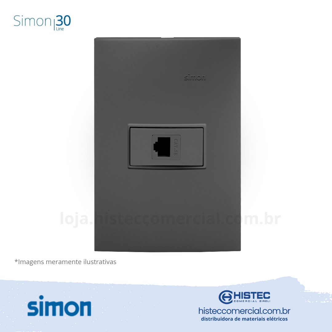 Com acabamento grafite elegante e fabricado em plástico de engenharia resistente, este conjunto é compatível com módulos Simon 35 e placas Simon 30, permitindo fácil integração ao sistema de cabeamento estruturado. O conjunto inclui módulo tomada RJ45 Cat5E, placa e suporte, oferecendo uma instalação completa, prática e confiável. O Cat5E suporta até 1Gbps de transmissão de dados, com cada par trançado operando em até 250Mbps de transmissão e recepção, garantindo rede estável e de alto desempenho.