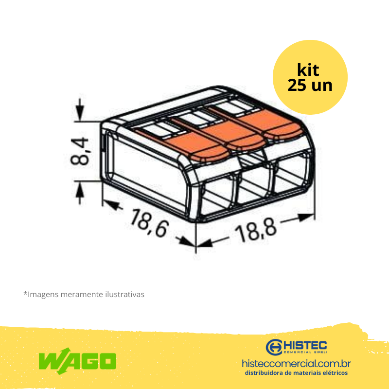 KIT CONECTOR WAGO 221-413 3P 0,5~4mm2 32A COM 25 PEÇAS