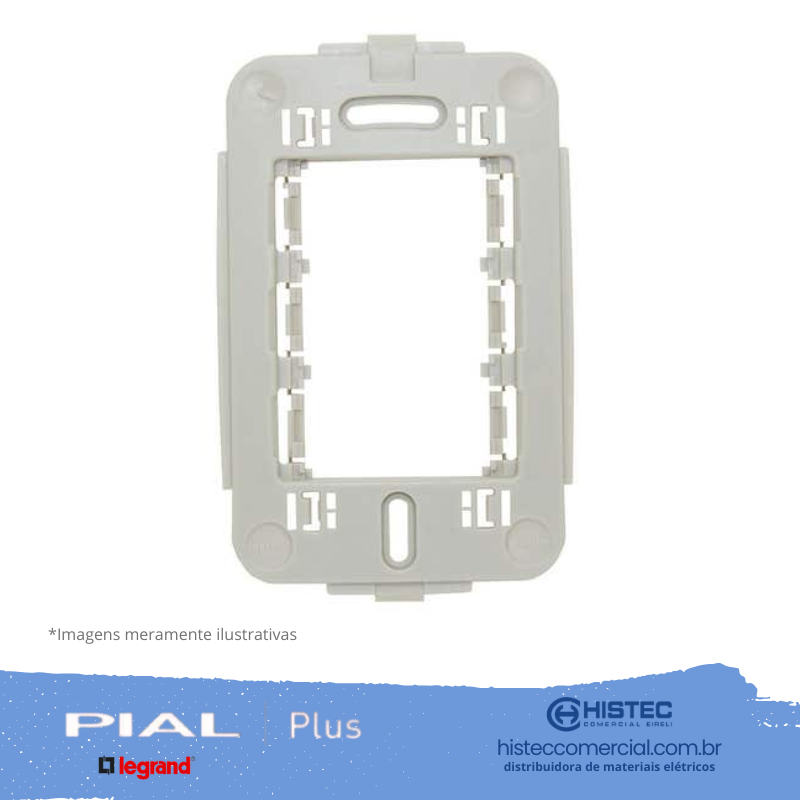 Compatível exclusivamente com os módulos e placas da linha Pialplus, acompanha parafusos auto atarraxantes para uma instalação prática e firme.