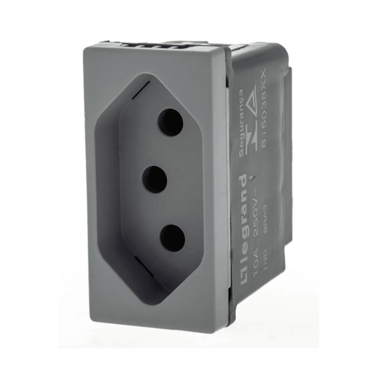Apresentamos o Módulo de tomada 2P+T com 10A de corrente máxima.