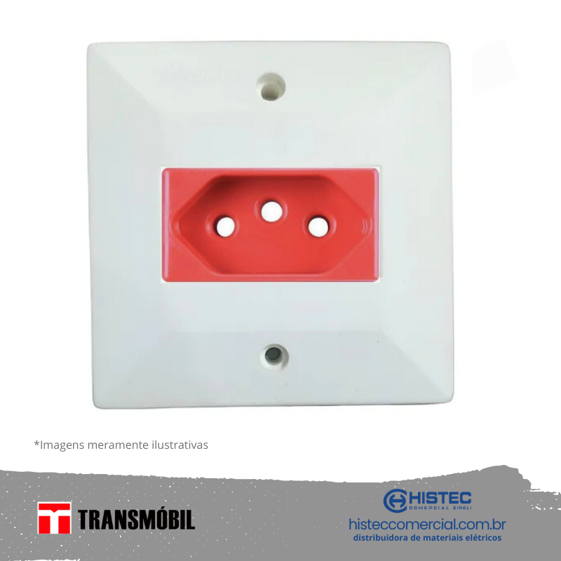 A Tomada 2P+T 20A 250V na cor vermelha da linha Sistema "X" da Transmobil é ideal para quem precisa de maior capacidade de corrente com fácil identificação visual. Compatível com o padrão NBR 14136, oferece conexões firmes e seguras para equipamentos que exigem maior potência, mantendo o acabamento branco clássico com detalhes em vermelho.